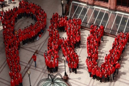 Guided by coloured T-shirts, cones and leaders, everyone will be led to their own spot that will then create an image from all of the people, that can be completely bespoke!